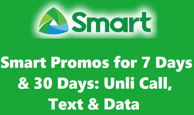 Smart Promos have various options for you to choose from. Some have seven-day and thirty-day validity, unlimited calls, unlimited texts, internet data and combinations of these services. It is best to subscribe to a promo that is most suitable for you.